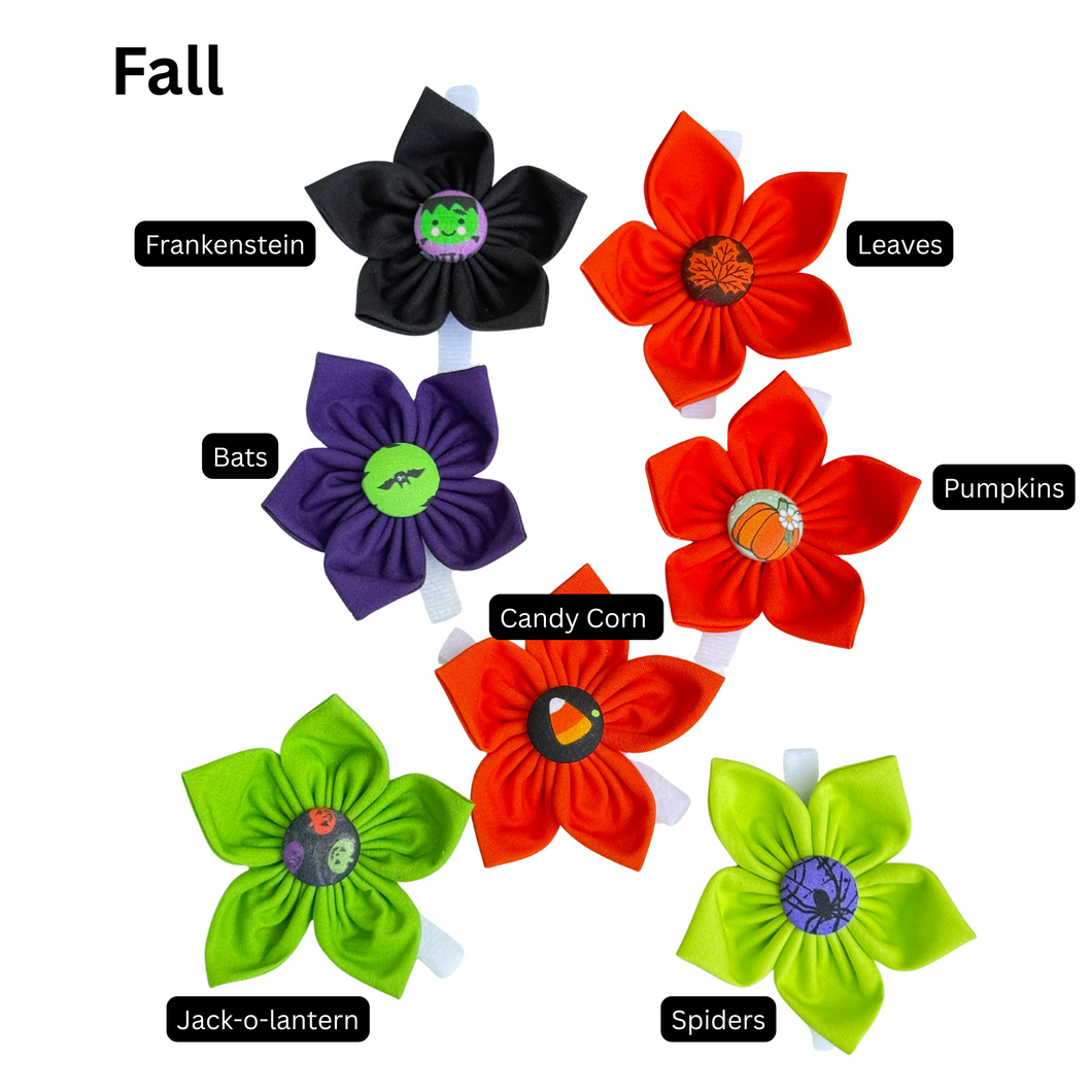 🌼 Handmade fabric flowers & bows that slip onto any collar